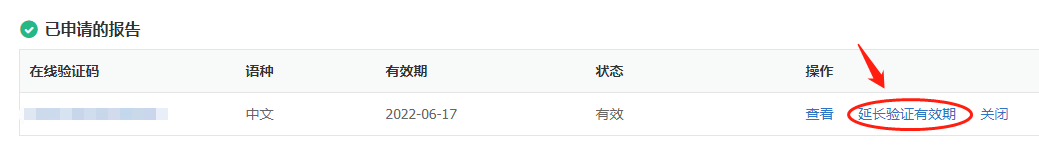 申请《学历证书电子注册备案表》后,即可获得“在线验证码”,如已申请过但有效期已经过期,点击“延长验证有效期”即可延长使用该验证码